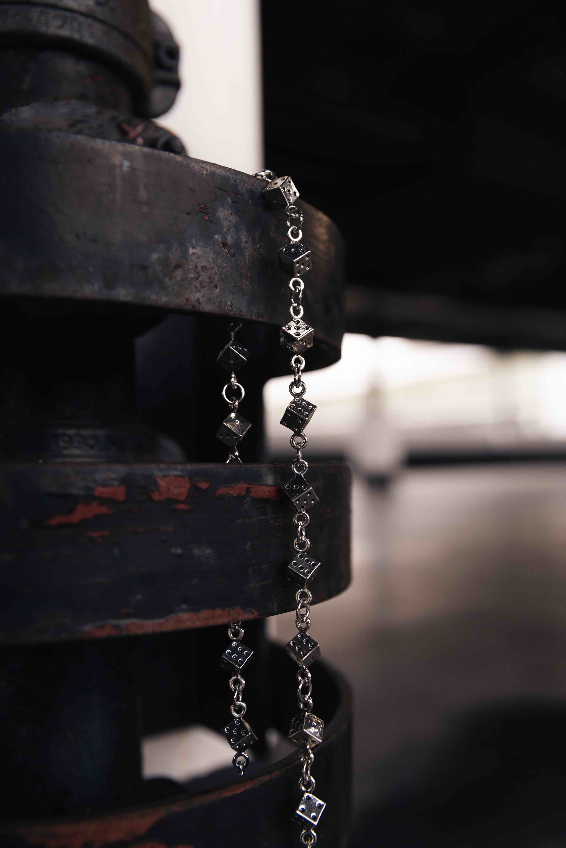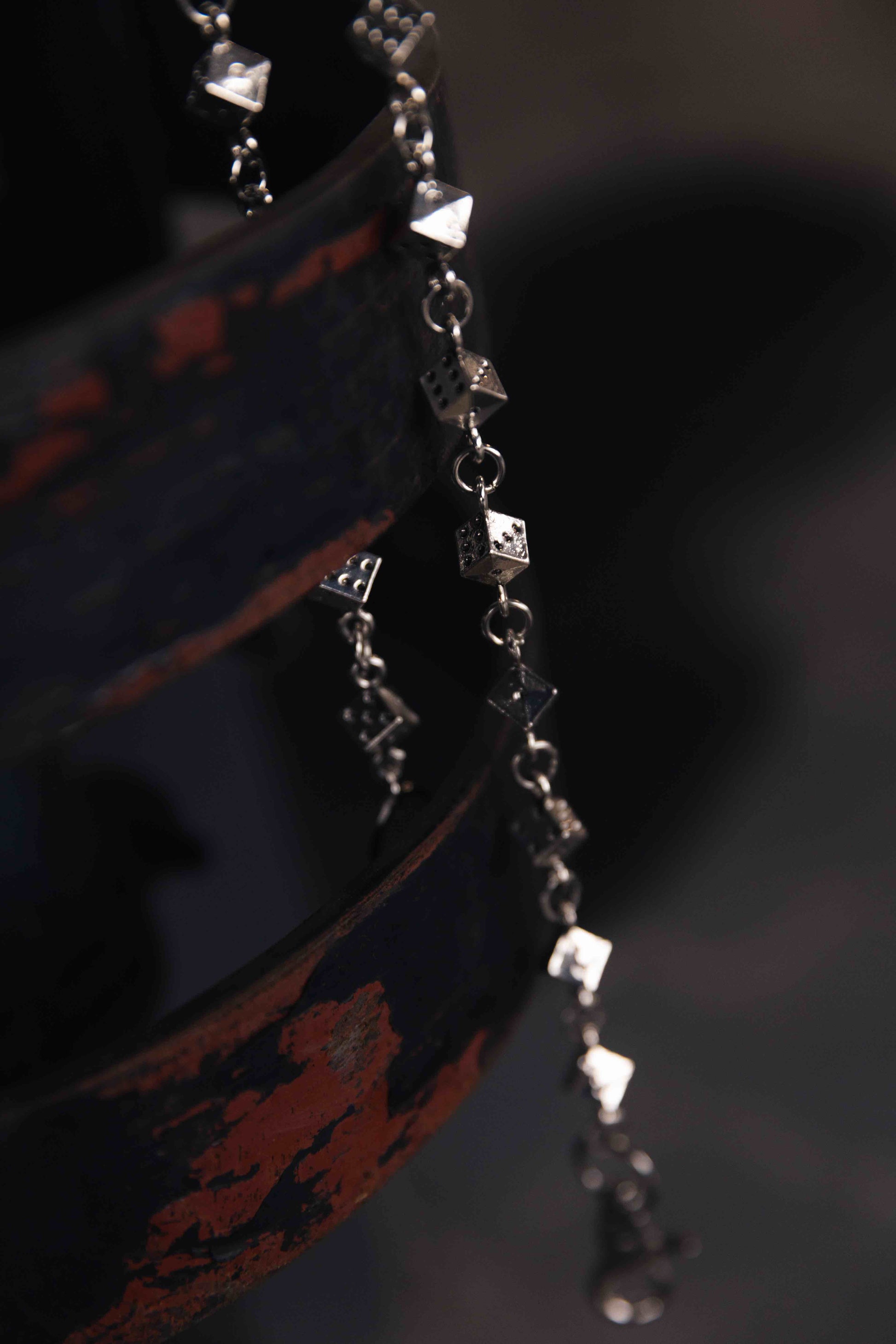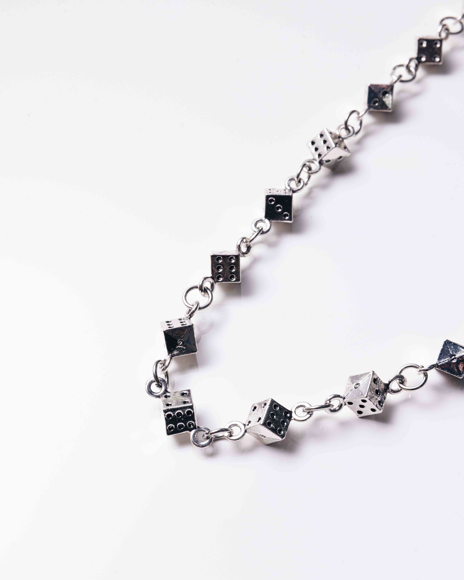 Chain featuring detailed dice accents for a playful but statement edge. Constructed from quality metals and secured with a durable lobster clasp for everyday wear. Recommended pairing with….’Starfall’