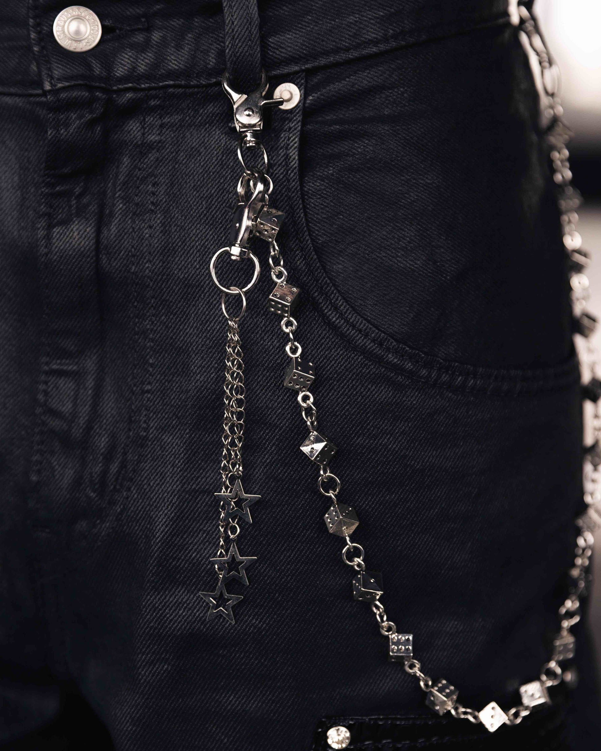 Silver chain featuring triple star charms for a clean, standout finish. Designed to add movement and subtle shine to any fit. Made from quality metals and secured with a durable lobster clasp for reliable everyday wear. Made to stack, recommended pairing with….’ Loaded Dice’